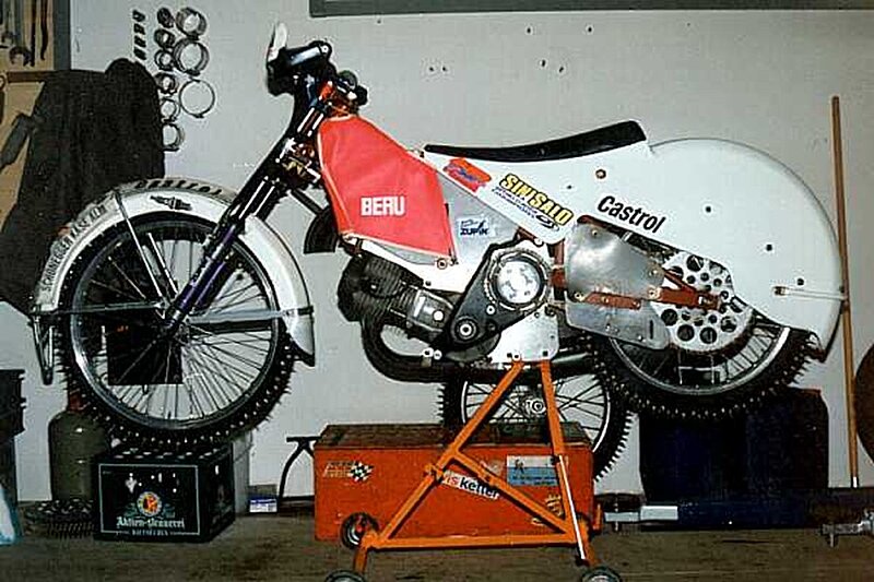 Das Motorrad ist ein Spezial Solo Motorrad, 500 ccm mit einem 4-Takt Motor ohne PS-Begrenzung. Die Motoren haben 2 Ventile und einen Vergaserdurchlass von 34 mm. Gefahren wird mit reinem Methanol, sowie mit pflanzlichem Schmiermittel (Rhizinusöl), damit absolut keine Umweltbelastungen entstehen. Die Reifen sind bestückt mit 28mm langen Spikes, vorne ca. 100 Stück und hinten ca. 200 Stück. Das Motorrad hat 2 Gänge, der 1. Gang zum Starten und der 2. Gang als Direktübertragung. Es hat keine Bremse. Als Höchstgeschwindigkeiten werden auf der Geraden bis zu 125 km / H erreicht.