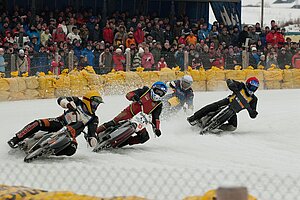 Eisspeedway ist das gleiche wie Sommerspeedway (auf Sand) jedoch auf reinem Natureis. Durch die 28mm langen Spikes sind in der Kurve spektakuläre Schräglagen möglich und auch nötig, um möglichst hohe Kurvengeschwindigkeiten zu erzielen.